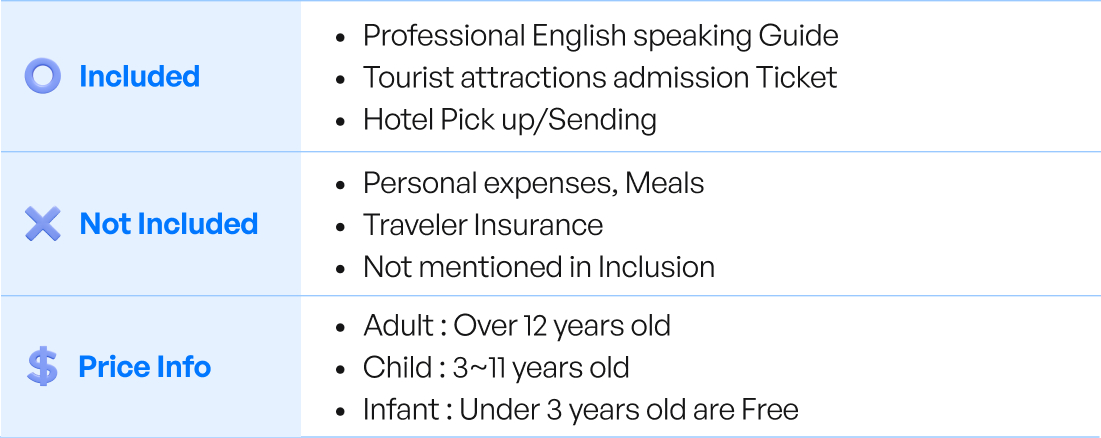 • Cancellation 3 days before 5PM (KST): 100% Refund