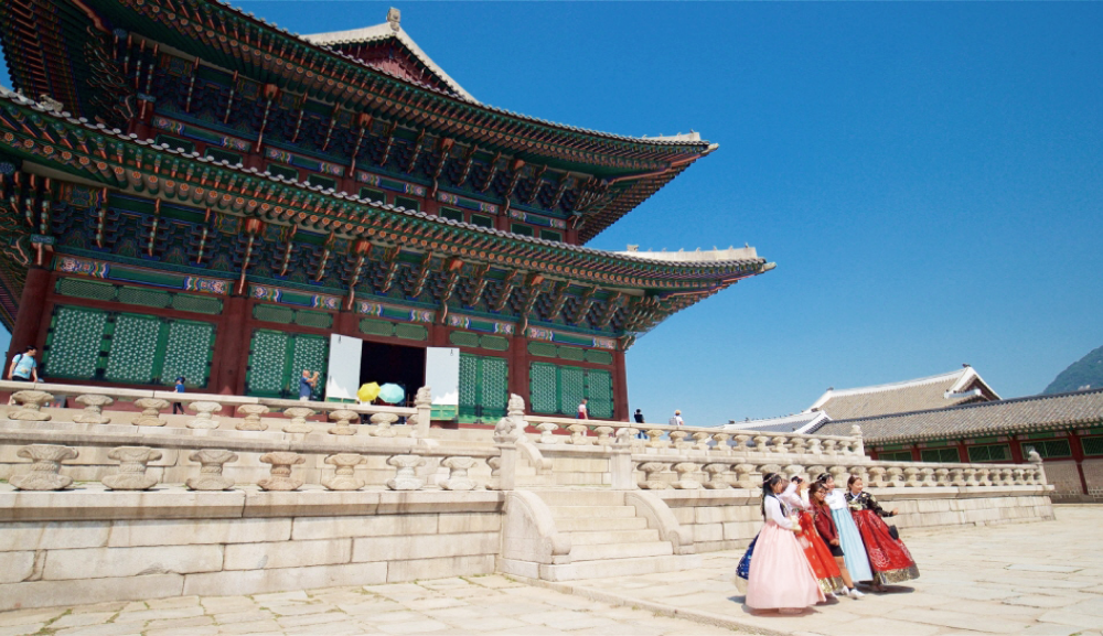 Gyeongbukgung Palace is one of the representative palaces in Seoul with more than 600 years of history, boasting the largest scale and architectural beauty. During the Japanese Invasion of Korea, many building in Gyeongbukgung Palace were burned down, so it underwent restoration. However, during the Japanese colonial period, 90 percent of Gyeongbukgung Palace disappeared. But Gyeonghoeru and Hyangwonjeong pond, representative structures of the Joseon Dynasty, remain intact, and the woldae and statues of Geunjeong hall represent the sculptural art of that time, making it the No.1 tourist destination. Although it has a painful history of many buildings demaged by fire and forces, it is well preserving the value of Gyeongbukgung Palace through continous restoration work.