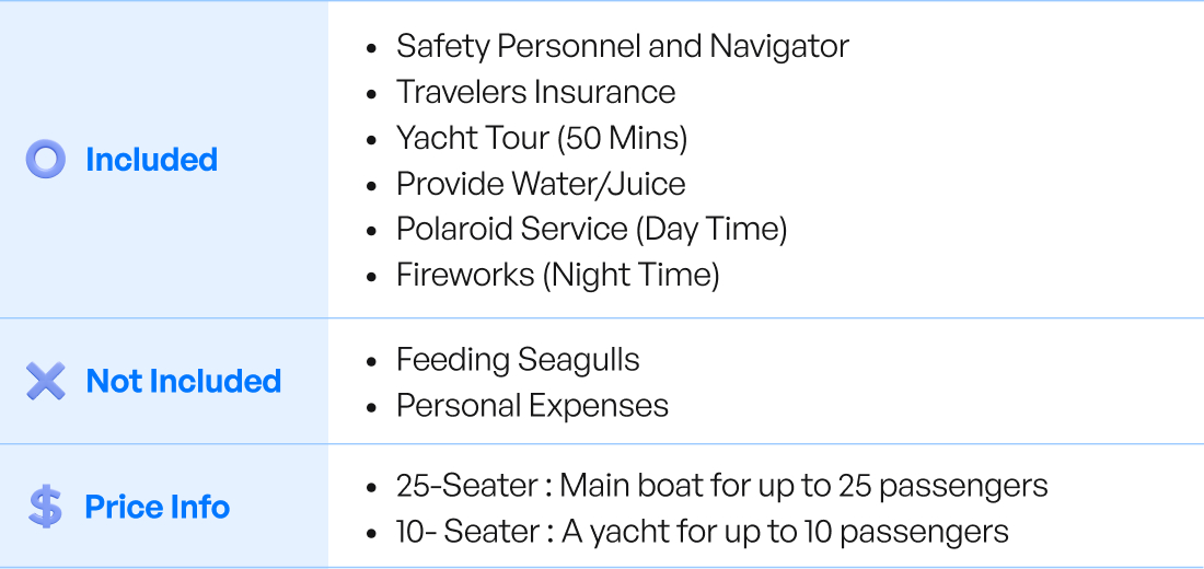 5. All yachts are equipped with life vests, life-saving equipment, and fire extinguishers, allowing you to experience with safety.