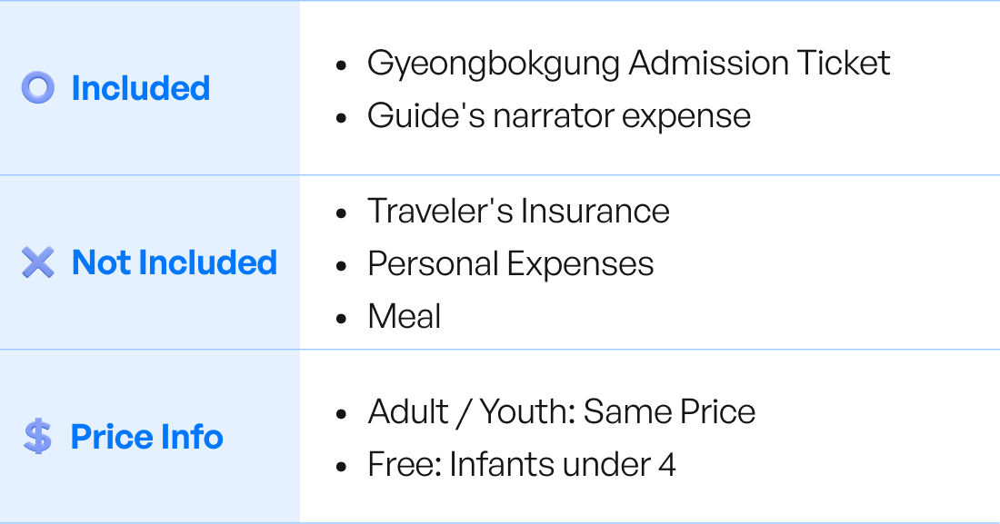 6. Please note that the Gyeongbokgung tour has no time for the Night tour.