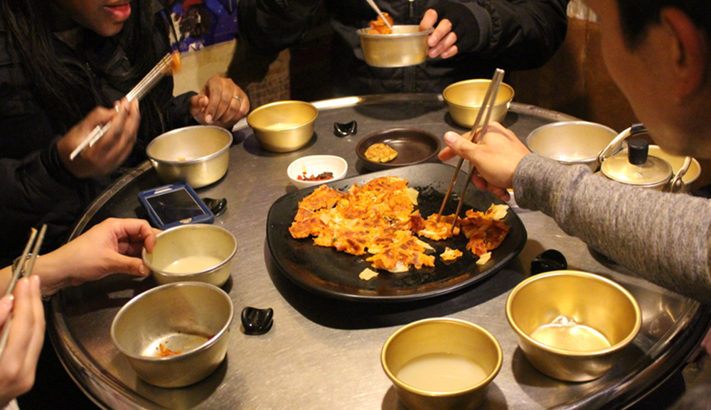 2. Taste interesting Korean food like Kimchi, Korean BBQ, and savory pancakes.